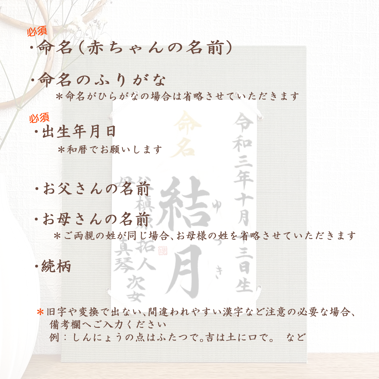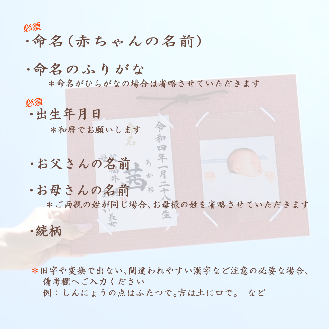 商品名:命名書 フレーム付き ポストカードサイズ 2枚セット