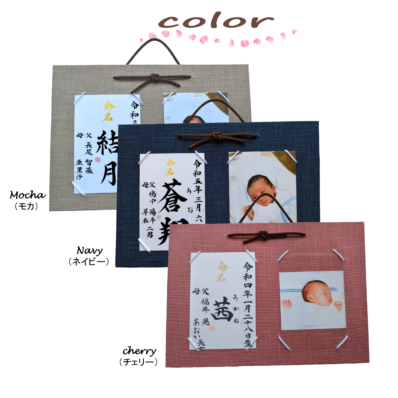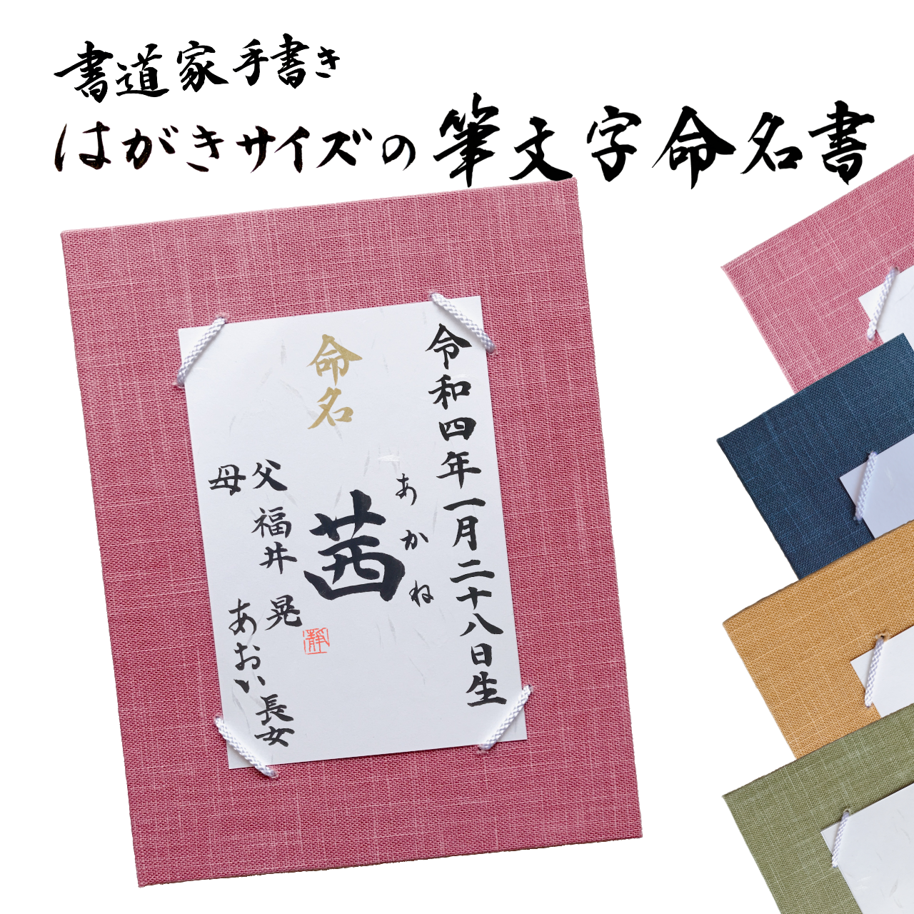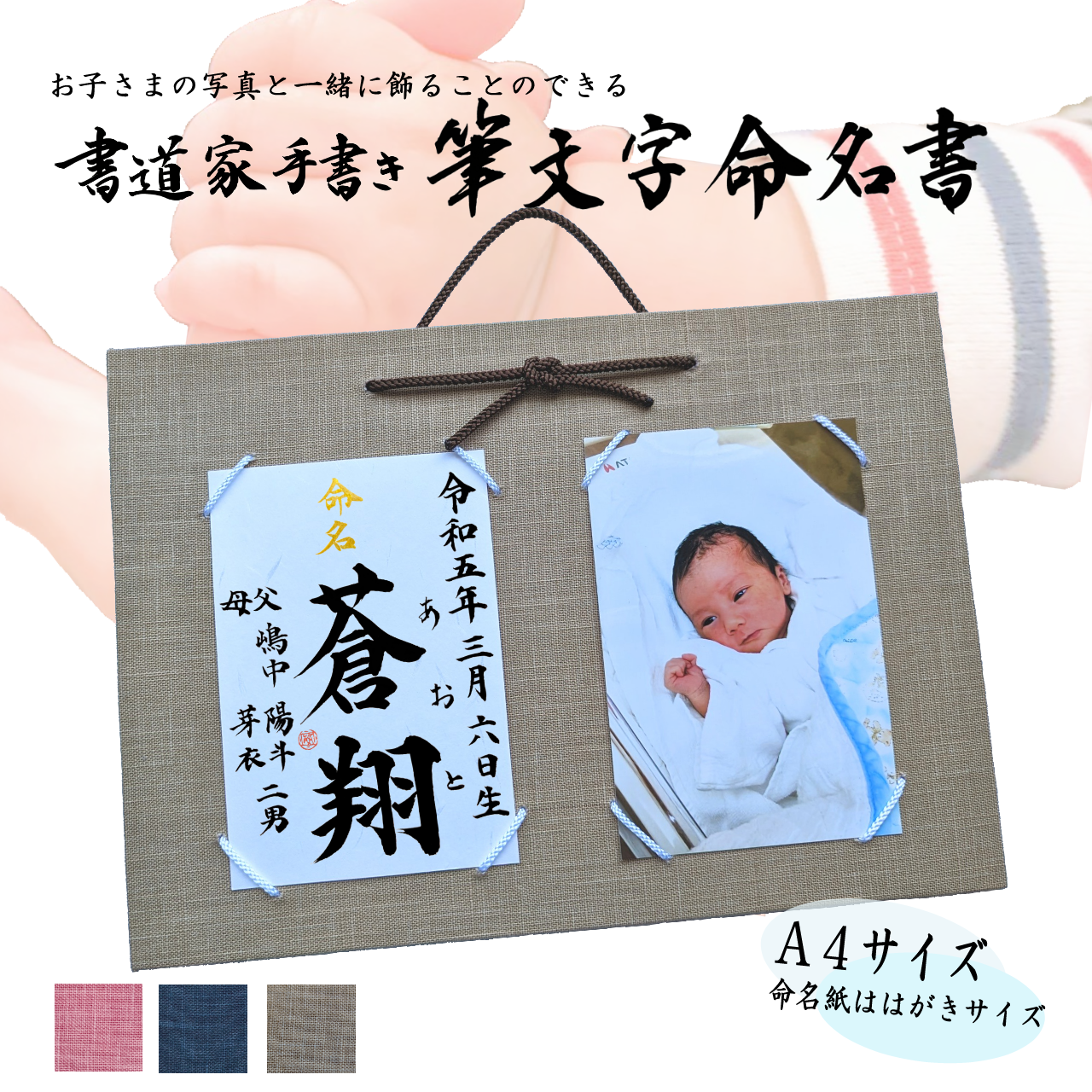 書道家手書き筆文字命名書 フレーム付き ポストカードサイズ 壁掛け 立て掛け シンプルな略式オリジナル命名書 毛筆手書き 命名書代筆 布製フレーム 選べる4色 置き掛け両用 はがきサイズ 命名書代筆 オーダーメイド コンパクト